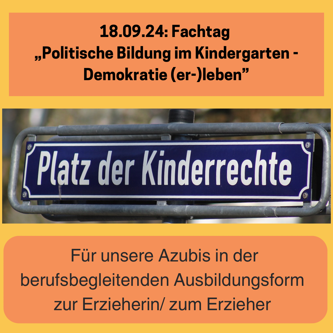 Am 18.09.2024 hat eine Auszubildende aus der berufsbegleitenden Ausbildung zur Erzieherin (Abschluss Jan 2025) einen Fachtag für ihre Mitstreiter*innen zum Thema „Politische Bildung im Kindergarten - Demokratie (er-)leben“ geplant und durchgeführt. Es ging dabei auch um Kinderrechte und Alltagsrassismus. Es gab interessante Impulse und viel Raum zum Diskutieren, Reflektieren und Austauschen. Unser Fazit: Es müsste häufiger, auch in Kita-Teams darüber gesprochen werden. Einige Teilnehmende wollten dies mit in eine nächste Dienstbesprechung nehmen…
