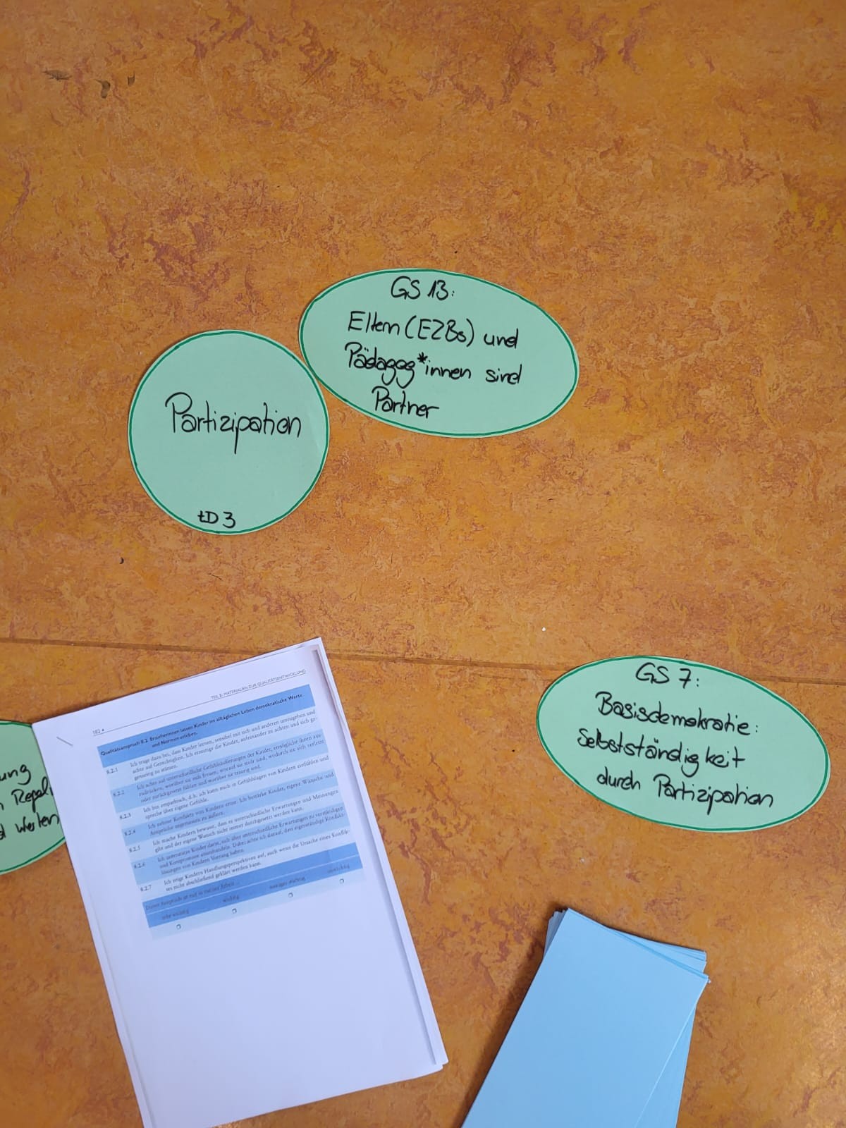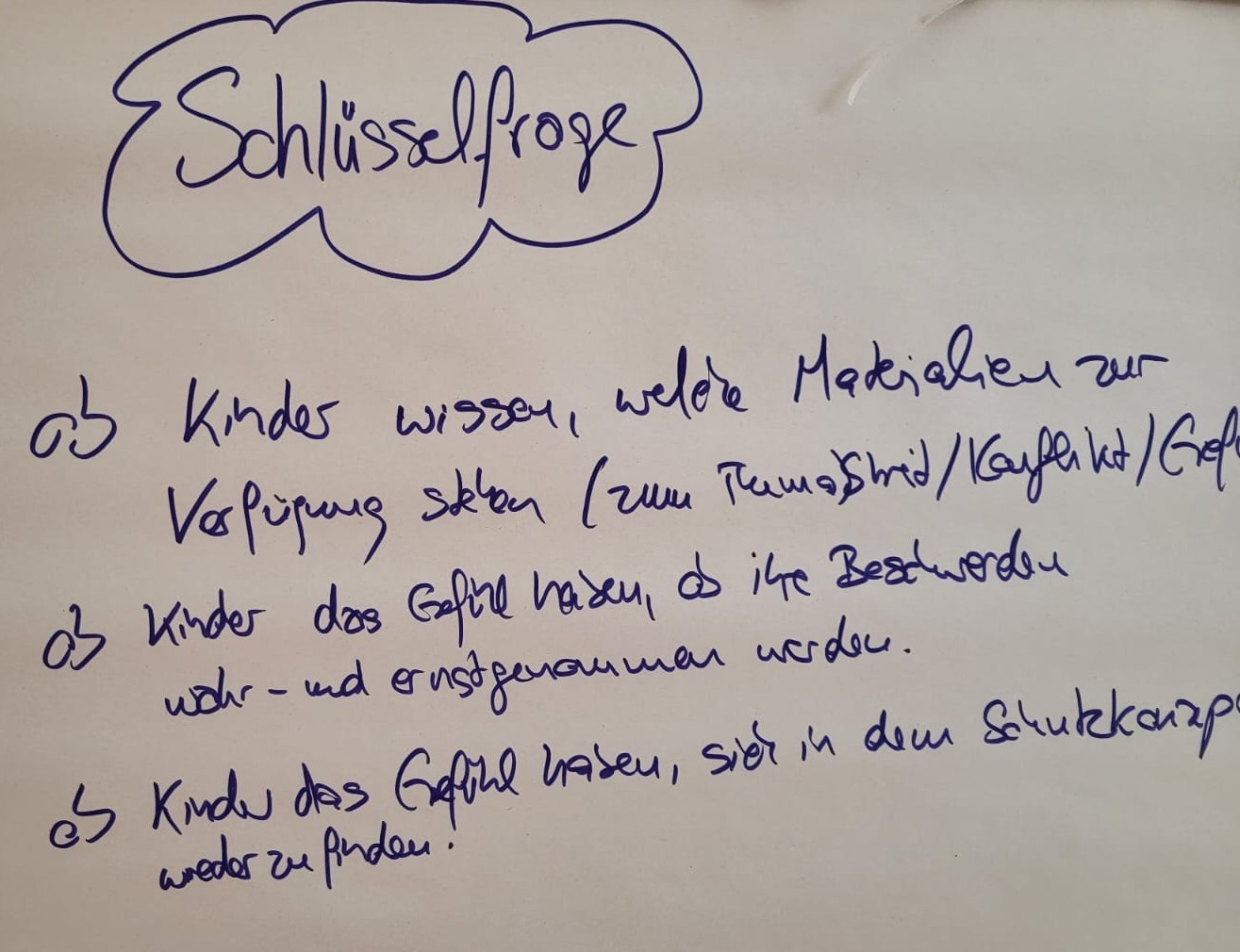 Im dritten Block haben die Fachkräfte sich intensiv mit den UN-Kinderrechten als Voraussetzung für das Zusammenleben in der Kita auseinandersetzen und anhand von Fallbeispielen pädagogisches Handeln zu reflektieren. Ziel war/ ist es, unterschiedliche Verantwortlichkeiten zu erkennen und Machtgefälle zu identifizieren, um entwicklungsangemessen Selbst- und Mitbestimmung zu ermöglichen.