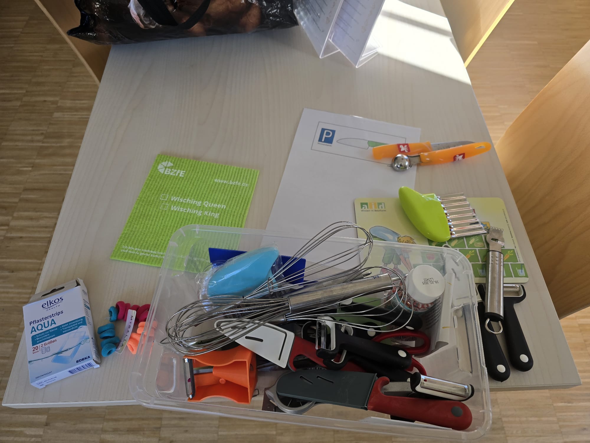 Die Küchenkräfte haben die Themen/ Checklisten zur Vorbereitung und Durchführung kennengelernt. Auch eine Methode zur Sicherheit wurde besprochen, so lernten sie zum Beispiel den Messerparkplatz kennen. (siehe www.ichkannkochen.de)