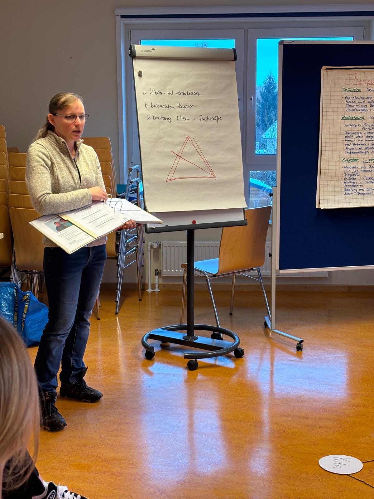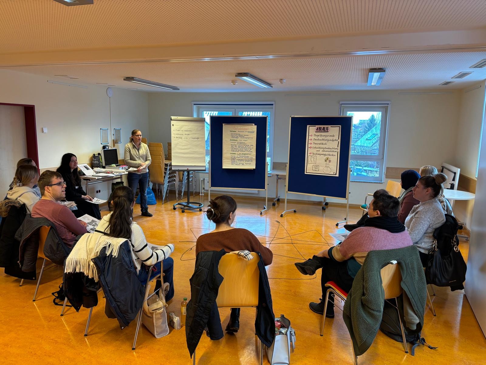 Unsere neuen, pädagogischen Fachkräfte wurden von der Kita Akademie zu einer Informationsveranstaltung eingeladen, um die Inhalte und die Arbeitsweise der heilpädagogischen Fachberaterinnen der städtischen Kitas, Marlene Schneider und Beate Quade, kennenzulernen. Anhand eines fiktiven Fallbeispiels haben sie sich inhaltlich mit den Strukturen und Formularen vertraut gemacht und ein erstes Ausfüllen ausprobiert. So sollen die Kolleginnen und Kollegen bei Bedarf mit den Abläufen vertraut gemacht werden und die gewünschte Unterstützung bekommen.